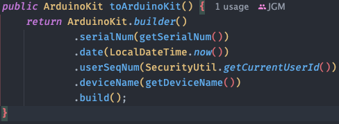 아두이노 키트로 변환할 때 필요한 plants 값을 넣어주지 않았기 때문에 발생한 문제였다. 그래서 기본값을 넣어줘야 하는데 이 글을 참고해서 @Default 어노테이션으로 기본값을 넣어줬다. 그리고 직접 @Default 를 넣었을 때 생성되는 코드를 확인해봤다.